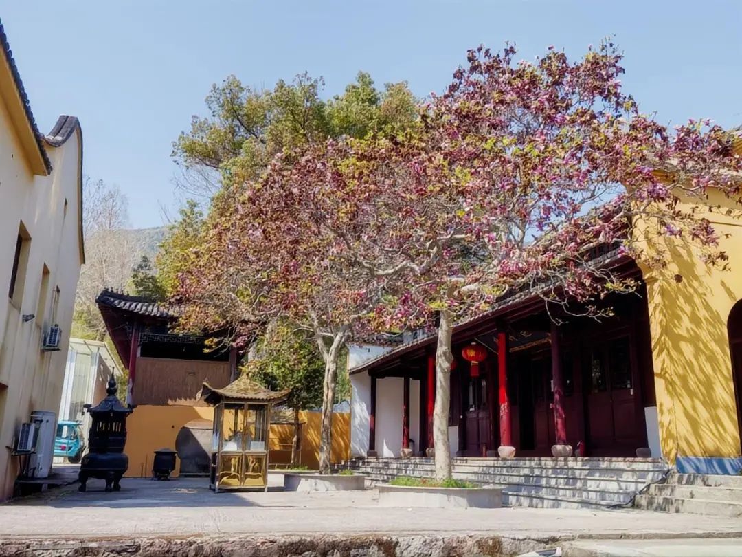 早上8:45,大巴準(zhǔn)時(shí)從園區(qū)啟程,在陽(yáng)光明媚中駛向?qū)幉ㄏ笊綁︻^鎮(zhèn)舫前村。抵達(dá)智門(mén)禪寺時(shí),茶園環(huán)繞,竹海綿延,百年紫玉蘭正值花期。大家或駐足欣賞古剎花影,或在禪寺咖啡館品鑒特色飲品,于傳統(tǒng)與現(xiàn)代交融中開(kāi)啟這一天的芳菲之旅。
