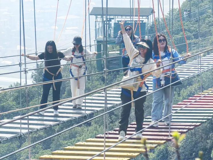 韶光爛漫,漫步尋春。午后,大家轉(zhuǎn)戰(zhàn)靈巖火山峰景區(qū),沿登山步道結(jié)伴而行,鍛煉身體之余,俯瞰浙東沿海罕見(jiàn)的火山口地貌遺跡。人花相映,山海相逢,既有虛空行走、高空滑翔的“挑戰(zhàn)派”,也有慢行賞景的“休閑黨”,共同享受山海交織的壯闊畫(huà)卷。