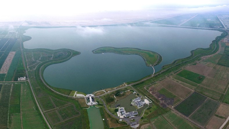 慈溪市鄭徐水庫(kù)工程位于杭州灣大橋南岸,地處慈溪市10萬(wàn)畝現(xiàn)代農(nóng)業(yè)開(kāi)發(fā)區(qū)中心位置,是浙東引水工程重要組成部分。因壩線形狀為慈溪市版圖,故又名新慈湖。水庫(kù)以調(diào)蓄為主,兼具生態(tài)和景觀功能。