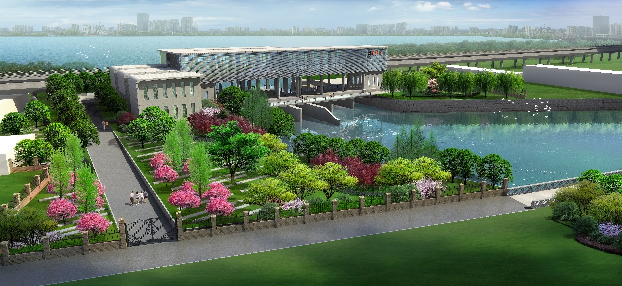 工程位于浙江省寧波市江北區(qū)甬江防潮堤沿線,新建排澇閘一座,總凈寬21m,泵站一座,排澇流量40m³/s。工程建筑設(shè)計統(tǒng)一運(yùn)用混凝土、鋼、玻璃等材質(zhì),與河流、景觀巧妙結(jié)合,在體現(xiàn)水利設(shè)施特色的同時,與城市景觀融為一體。