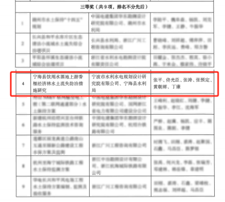 近日,浙江省水土保持學會第三屆優(yōu)秀設計評選獲獎名單出爐,15個獲獎工程中,我院成功鎖定一席!此次我院受寧海縣水利局委托開展實施的寧??h飲用水源地上游香榧經(jīng)濟林水土流失防治措施研究榮獲三等獎。該獎項由浙江省水土保持學會設立,每兩年評審一次,通過對水土保持規(guī)劃設計領域中取得優(yōu)異成績的集體和個人進行表彰,從而推動全省水土保持行業(yè)的發(fā)展。