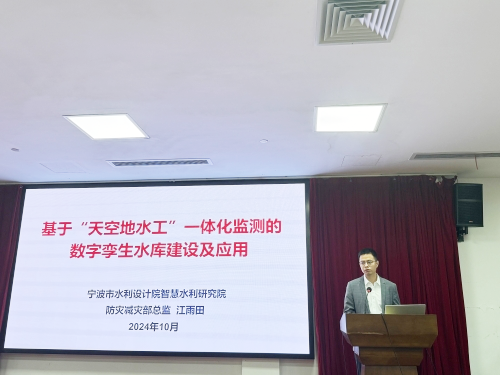 現(xiàn)場,我院智慧水利研究院防災減災部總監(jiān)江雨田受邀就“基于‘天空地水工’一體化監(jiān)測的數(shù)字孿生水庫建設及應用”為題進行了分享,從“天空地水工”一體化監(jiān)測感知網(wǎng)的要素構成、如何建設數(shù)字孿生水利、數(shù)字孿生水利工程建設的關鍵技術、“數(shù)字孿生周公宅-皎口梯級水庫”數(shù)字孿生應用實例等方面介紹,為參會人員帶來了一場圖文并茂、知行兼?zhèn)洹⒈薇偃肜锏膶n}講座。