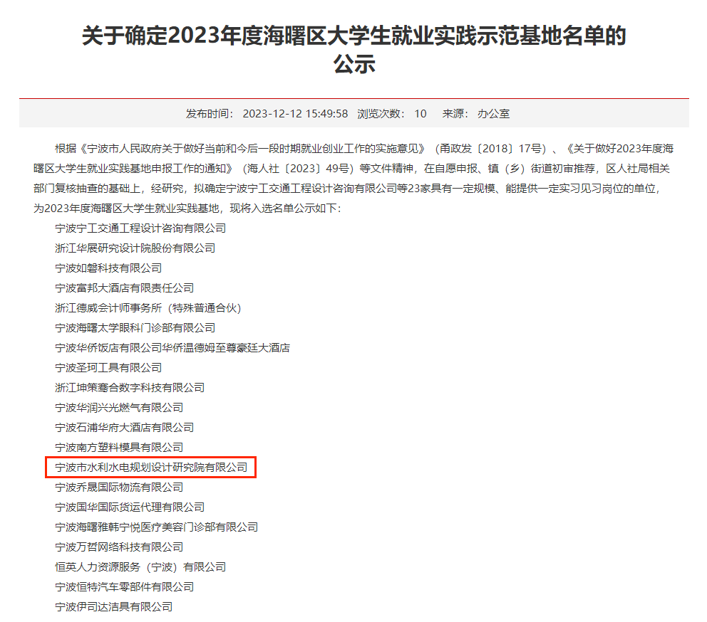 喜報(bào) | 我院獲評(píng)2023年度海曙區(qū)大學(xué)生就業(yè)實(shí)踐示范基地