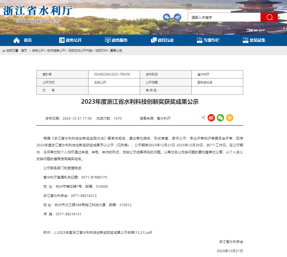 喜報(bào) | 我院3項(xiàng)成果榮獲2023年度浙江省水利科技創(chuàng)新獎(jiǎng)!