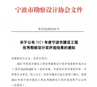 喜報 | 我院兩大項(xiàng)目榮獲2023年度寧波市優(yōu)秀勘察設(shè)計獎!