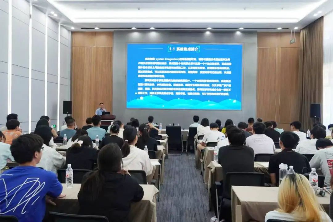 在首日的講座報告與交流學習中,我院智慧水利研究院的三位專家?guī)砹司始姵实闹黝}分享。咨詢與解決方案部總監(jiān)張焱以“寧波院智慧水利研究及企業(yè)數(shù)字化轉(zhuǎn)型進展”為題,系統(tǒng)介紹了寧波院在智慧水利領(lǐng)域的創(chuàng)新實踐,重點分享了企業(yè)數(shù)字化轉(zhuǎn)型的戰(zhàn)略路徑、關(guān)鍵技術(shù)突破以及取得的階段性成果;系統(tǒng)集成部總監(jiān)孫巍圍繞“智慧水利基礎(chǔ)設(shè)施”這一核心議題,從集成體系架構(gòu)、物聯(lián)感知體系、運行環(huán)境體系和安全保障體系四個維度,深入剖析了智慧水利基礎(chǔ)設(shè)施建設(shè)的技術(shù)框架和實施要點;軟件開發(fā)部總監(jiān)陳勇則聚焦“智慧水利軟件開發(fā)”領(lǐng)域,通過詳實的開發(fā)概述、完整的開發(fā)流程解析、前沿的開發(fā)技術(shù)介紹以及生動的實踐案例展示,為聽眾呈現(xiàn)了智慧水利軟件開發(fā)的完整知識體系。三位專家的講座既立足行業(yè)前沿又注重實踐應用,通過深入淺出的講解,不僅為同學們勾勒出智慧水利發(fā)展的清晰圖景,更搭建了理論聯(lián)系實踐的知識橋梁。